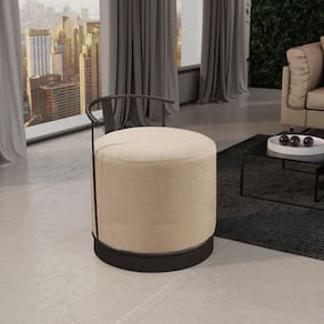 Puff Redondo em Linho 50cm com Base ÁQuila Bege