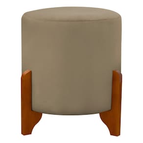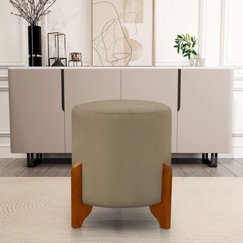 Puff Redondo Em Veludo Com Pés Em Madeira Maciça Decorativo Sala Quarto