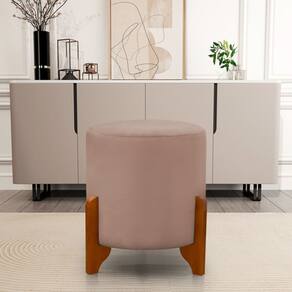 Puff Redondo Em Veludo Com Pés Em Madeira Maciça Decorativo Sala Quarto