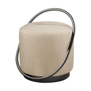 Puff Redondo Lunar Em Linho E Base Metal Preto Cor Linho Bege
