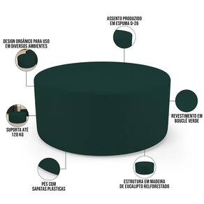 Características: Estrutura em madeira de reflorestamento de eucalipto. Revestimento em Bouclê de alta qualidade na cor Verde. Assento com espuma D-26 de alta resistência. Design orgânico para uso em diversos ambientes. Pés sapatas plásticas. Peso suportado: Até 120 kg.