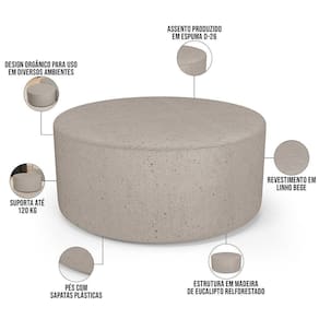 Largura: 90 | Color: Bege | SupplierSimpleName: Puff Redondo Orgânico para Living 90cm Lola W01 Linho Bege - Lyam Decor | OriginState: PR | MaterialFamily: Madeira, Tecido, Espuma | ColorSupplier: Bege | Model: Lola | OriginCountry: | DepthWidthSideToSide: 90 | ColorFamily: Bege | Material: Estrutura em madeira de reflorestamento de eucalipto. | ProductHeight: 42 cm | ColorSimple: Bege | ProductWarranty: 158 dias após o do produto | Altura: 42 | SizeDescription: Altura: 42 cm x Largura: 90 cm x Profundidade: 90 cm | ProductInstructions: Produto para uso em ambiente interno, nao devendo ficar exposto ao sol, calor e umidade excessivos. | ProductWidth: 90 cm | Depth Front To Back: 90 | ProductWeight: 8 kg | ProductContents: 01 Puff | Lado a Lado: 90 | ProductLength: 90 cm | Profundidade: 90