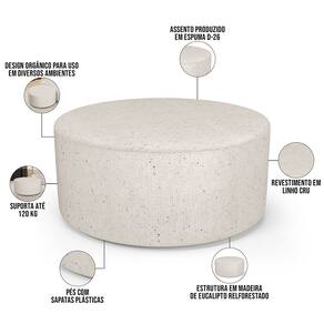 Características: Estrutura em madeira de reflorestamento de eucalipto. Revestimento em Linho de alta qualidade na cor Cru. Assento com espuma D-26 de alta resistência. Design orgânico para uso em diversos ambientes. Pés sapatas plásticas. Peso suportado: Até 120 kg.