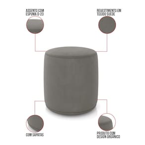 Puff Redondo Orgânico para Sala Malu Suede M11 - D`Rossi