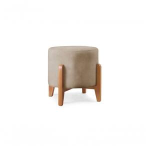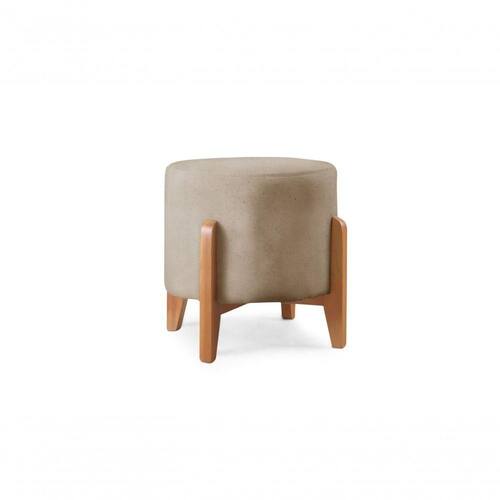 Puff Redondo Para Sala Pé De Madeira linho Bege 103