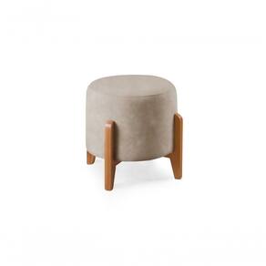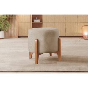 Puff Redondo Para Sala Pé De Madeira linho Bege 103 - Blush