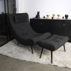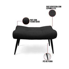 Puff Sher Suede Pés Palito De Ferro - D`Rossi Cor Preto