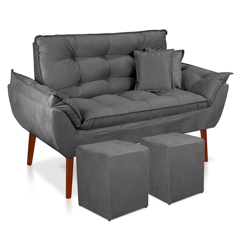 puffs quadrado suede cinza
