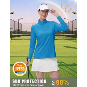 MAGCOMSEN Camisetas femininas com zíper 1/4 de manga comprida Rash Guard FPS 50 quartos zíper pulôver secagem rápida caminhadas treino tops, Azul, verde - Proteção solar FPS 50+: As mangas compridas com protetor solar feminino fornecem proteção solar mais eficaz contra os raios UVA/UVB prejudiciais na pele - Material: 85% poliéster, 15% elastano. O tecido é confortável, macio, leve e respirável e o design sem etiqueta reduz o atrito e melhora o conforto de uso - Secagem rápida: tecido respirável, leve e com absorção de umidade mantém você fresco e seco enquanto pratica esportes ou corrida - Zíper 1/4: o pulôver de golfe feminino tem um design de gola alta com zíper que estende a proteção solar e protege o pescoço, facilitando a dissipação do calor e a retirada e colocação - Ocasiões: A camisa feminina com proteção solar acima de 50 anos é adequada para corrida, treinamento, ciclismo, golfe, natação, caminhadas, viagens, pesca e assim por diante