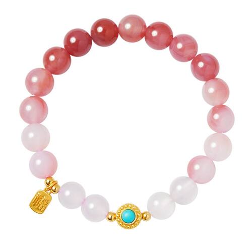 Tamanho: Diâmetro do cordão 8 mm Peso: 18 g Material: contas de ágata vermelha ágata com acabamento gradiente — Feitas de contas redondas de ágata vermelha de 8 mm com um tom gradiente natural, apresentando transições suaves e elegantes de rosa para vermelho profundo. Center Turquoise Accent Bead — Apresenta uma proeminente pérola turquesa emoldurada em um cenário dourado, simbolizando vitalidade, clareza e crescimento pessoal. Delicado pingente prateado S925 — Inclui um pingente prateado com tema de fortuna para dar mais significado e um toque refinado e auspicioso à pulseira. Nova estética de estilo chinês — combina símbolos tradicionais com uma estrutura moderna e minimalista, ideal para mulheres modernas que buscam profundidade cultural. Ajuste elástico e confortável — amarrado em um cordão elástico para um ajuste confortável e flexível que se adapta à maioria dos tamanhos de pulso, perfeito para uso diário ou espiritual.