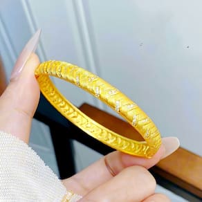 Tamanho: Largura 7,5 mm Peso: 22 g Material: Gold Placer Material premium Gold Placer — Feita com placer dourado de alta qualidade, esta pulseira oferece cores ricas e brilho duradouro, pesando 22 g e 7,5 mm de largura para uma aparência ousada e elegante. Artesanato de inspiração antiga — Com um motivo tradicional de tecido chinês com acabamento escovado fosco, esta pulseira incorpora uma estética vintage refinada adequada para uso moderno. Design de fecho seguro — Construído com um mecanismo de fecho confiável que garante que a pulseira permaneça firme em seu pulso durante atividades diárias ou ocasiões formais. Enfeite com detalhes em strass — Os strass brilhantes são incorporados no padrão diagonal para adicionar um toque de brilho e sofisticação ao design geral. Acessório de moda versátil — Ideal para mulheres que buscam uma fusão única de herança étnica e luxo contemporâneo, perfeito para combinar com roupas tradicionais e modernas.