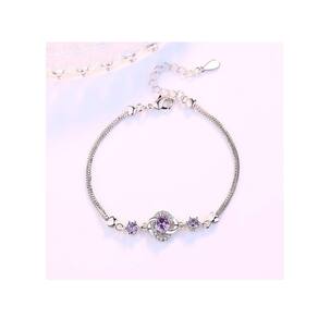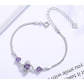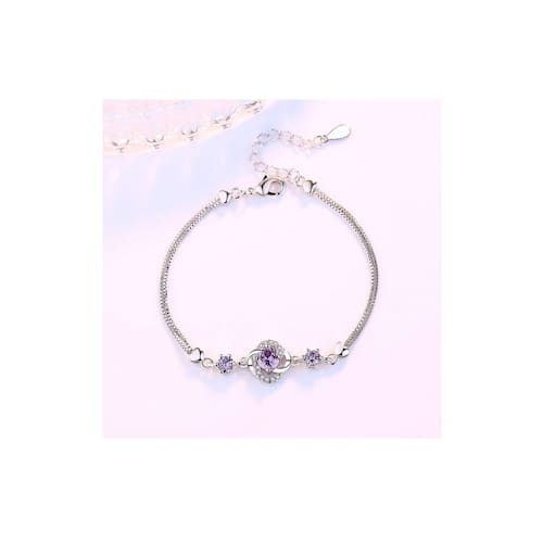 Pulsera bañada en plata modelo flor purpura de la suerte y corazones plateada Esta hermosa pulsera reflete la femininidad que tiene cada mujer. su diseño cristales en flor purpuras incrustados, circones y corazones plateados, mantiene la elegancia y prestancia que tiene quien la porta. Com um design elegante e durável, esta pulseira pode ser combinada com roupas informais e formais, destacando uma elegância única. Para toda estación del año.Detalles; Modelo; flor de la suerte, circones y corazones Color; plata y cristales purpuraLargo; ajustável até 20 cm AproxSe entrega en una elegante caja de regalo.