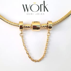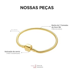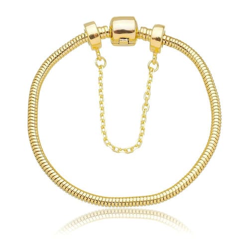 MODELO: Pulseira para berloques com trava de segurança banhada com 7 milésimos de ouro 18k.