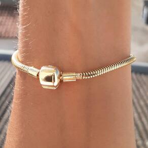 MODELO: Pulseira para berloques com trava de segurança banhada com 7 milésimos de ouro 18k.