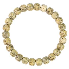 Tamanho: Diâmetro do cordão 7x8 mm Material: BodhiziNatural Bodhi Seed Construction — Apresenta sementes autênticas de bodhi da lua estrela de Hainan em um tom amarelo-creme quente, oferecendo elegância natural e simbolismo tradicional. Miçangas cilíndricas compactas de 7 x 8 mm — Projetadas com contas cilíndricas finamente polidas que são leves e ideais para pulsos menores, especialmente adequadas para adolescentes e pulsos finos. Estilo calmo e minimalista — O design simples de laço único e as cores sutis tornam esta pulseira uma escolha refinada para uso diário ou prática de meditação. Unissex para adolescentes e adultos — Uma joia versátil que serve tanto para homens quanto para mulheres, adequada para casais, buscadores espirituais ou pessoas que se preocupam com a moda. Construção elástica e durável — A construção com cordão elástico oferece um ajuste confortável e seguro que se adapta à maioria dos tamanhos de pulso e resiste ao uso diário.
