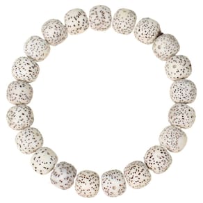 Tamanho: Diâmetro do cordão 10 x 11 mm Material: Material de semente de bodhi premium Bodhizi — Feito com sementes autênticas de bodhi da lua estelar de Hainan, cada grânulo apresenta manchas naturais e padrões de envelhecimento que refletem o artesanato tradicional. Design de miçangas em forma de barril — As contas cilíndricas exclusivas de 10 x 11 mm oferecem uma aparência distinta e uma sensação confortável no pulso, ideais para quem aprecia acessórios tradicionais e significativos. Simbolismo espiritual e cultural — Uma escolha preferida em comunidades espirituais, esta pulseira representa atenção plena, calma e paz interior durante a meditação ou o uso diário. Ajuste elástico e unissex — Projetado em um cordão elástico para facilitar o uso, adequado para homens e mulheres de vários tamanhos de pulso, perfeito para uso espiritual casual, ritual ou pessoal. Estilo simples, mas distinto — Os tons terrosos e a aparência salpicada a tornam uma peça minimalista de destaque que complementa os estilos de roupas étnicas e modernas.
