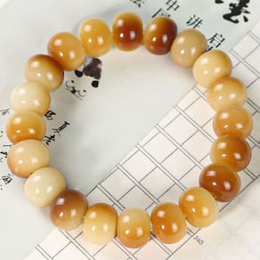 Tamanho: Diâmetro do cordão 10 x 13 mm Material: Bodhizi Material natural de raiz de Bodhi — Feitas a partir de Bodhizi de alta qualidade (raiz de Bodhi), essas contas de 10 x 13 mm apresentam textura suave e transições naturais de cor marrom para bege. Formato exclusivo de pão cozido no vapor — Com “pão cozido no vapor” arredondado ou miçangas em estilo ábaco, esta pulseira se destaca por seu design divertido e elegante. Tons de gradiente terroso — A transição gradual das miçangas do marfim cremoso para o caramelo profundo adiciona um toque vintage sutil, perfeito para uso diário ou reflexão espiritual. Ajuste confortável e elástico — Projetado com um cordão elástico durável para facilitar o uso, acomodando vários tamanhos de pulso e mantendo um ajuste seguro e flexível. Acessório de gênero neutro — ideal para homens e mulheres, esta pulseira é adequada para meditação, sessões de ioga ou como um acessório de tons calmos para roupas culturais e casuais.
