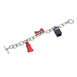 Pulseira Doctor Who com Dalek, gravata borboleta e TARDIS Charm Pulseira temática de Doctor Who licenciada pela BBC Se você mora na Terra ou em Gallifrey, você se destacará com esta pulseira de charme inspirada em Doctor Who licenciada pela BBC. Completa com Dalek, TARDIS e gravata borboleta, esta pulseira Doctor Who exala 'nerd' e será o presente retrô perfeito para qualquer Whovian dentro ou fora do planeta.