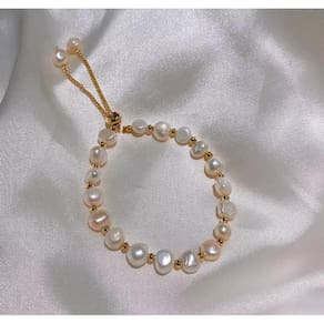 Pulseira bola bolinha dourada pérola branca fecho detalhes e5869