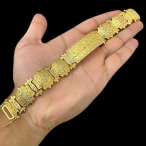 Pulseira Bracelete 18mm Personalizado Iluminado Ouro 18K Detalhes do Produto: Material: ligas metálicas de alta qualidade, especialmente tratadas para fixação e absorção do ouro, com acabamento em verniz protetor. Aparência: visual idêntico ao ouro maciço. Produção: artesanal, com atenção meticulosa aos detalhes. Banho: 10 camadas espessas de ouro 18k, finalizadas com verniz antialérgico . Elos: soldados varia conforme o modelo . Pedras: zircônias brilhantes cravejadas quando aplicável . Tamanhos Disponíveis: Cordões Masculinos: 70cm padrão e 60cm sob consulta/Pedido Via Chat . Cordões Femininos: 50cm padrão e 45cm sob consulta/Pedido Via Chat . Pulseiras: 21cm padrão ; tamanhos de 18cm a 23cm sob consulta/Pedido Via Chat. Pingentes: conforme imagens; consulte para mais detalhes via chat. Espessuras Recomendadas para Cordões / Pingentes: P: 1mm a 4mm M: 4mm a 8mm G: 6mm a 13mm Gg: 12mm a 18mm Incluso na Compra: Saquinho de organza para armazenamento seguro. Caixa elegante, perfeita para presente. Cupom de desconto para a próxima compra. Flyer com outros produtos da coleção. Carta de agradecimento personalizada. Adesivo da marca ToJoia18k. Informações Adicionais: : 6 meses termos acompanham o produto . Devolução: 7 dias para devolução sem questionamentos. Envio: despacho em até 24 horas úteis após confirmação do pagamento. Cuidados com a Peça: Evite contato com produtos químicos; aguarde o perfume secar antes de usar. Evite contato com shampoo, condicionadores e suor excessivo. Armazene em local seco, preferencialmente no saquinho de organza fornecido. Uso no mar e piscina é permitido; lave com água corrente e sabão neutro após. Por que Escolher a ToJoia18k Semi-joias luxuosas que combinam estilo, qualidade e sofisticação. Banho espesso de ouro 18k, garantindo brilho duradouro e acabamento impecável. Design exclusivo e produção artesanal, perfeitos para qualquer ocasião. Materiais premium que asseguram durabilidade. Ao escolher uma semi-joia ToJoia18k, você investe em qualidade, elegância e uma experiência única. Aguardamos sua compra Observação: pode ocorrer variação no fecho raramente . Imagens reais, sem edição. Qualquer dúvida, estamos à disposição para esclarecimentos.