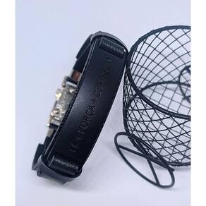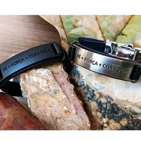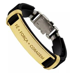 Pulseira masculina ajustável feita em couro sintético na cor preta com placa trabalhada na cor preta gravada Foco, Força e Fé com fecho cromado de trava. Além do estilo, beleza, possuem alta durabilidade. Pulseira de qualidade, linda e moderna que pode compor looks de diferentes estilos e ocasiões.