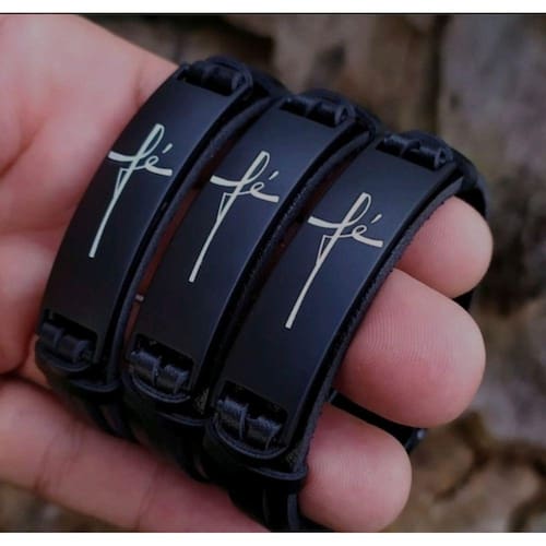 PRODUTO DE ÓTIMA QUALIDADE A PRONTA ENTREGAPulseira Couro Masculina Feminina com os dizeres - Manuscrito Fé ReligiosaPulseira masculina ajustável feita em couro sintético com placa em aço escrito em Manuscrito Fé com trava. Além do estilo, beleza, possuem alta durabilidade.Pulseira de qualidade, linda e moderna que pode compor looks de diferentes estilos e ocasiões.Obs: A pulseira pode ser ajustada do 19 cm até o 30cm de comprimento.- Comprimento da pulseira aberta: 19 cm a 30cm (precisa ajustar o tamanho caso chegue diferente da medida do seu pulso)- Largura da pulseira: 15 mm - Material Pulseira: Couro Sintético - Placa : Inoxidável com Verniz Italiano manteno Brilho Durabilidade ( Não desbota ) - Genero: Masculino / Feminino - regulável : sim Ajustável - Placa : Manuscrito - Garantia : 1 mes - Fecho da Trava Cromada Agradecemos pela visita e aguardamos a sua compra.DÚVIDAS ESTAMOS A DISPOSIÇÃO PELO ATENDIMENTO CHAT,,, :)após confirmação pagamento, seu produto sera Postado dentro de 24H Uteis Marca: LVO