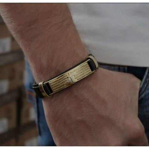Pulseira Bracelete Masculino Feminino Couro Sintético Ajustável Placa Aço Inox Oração Pai Nosso Prata Dourado Luxo Moda - Cor: Dourado