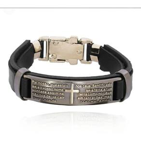 PRODUTO DE ÓTIMA QUALIDADE A PRONTA ENTREGAPulseira Couro Masculina Feminina com os dizeres - ORAÇÃO PAI NOSSO Pulseira masculina ajustável feita em couro sintético com placa em aço escrito em ORAÇÃO PAI NOSSO com trava. Além do estilo, beleza, possuem alta durabilidade.Pulseira de qualidade, linda e moderna que pode compor looks de diferentes estilos e ocasiões.Obs: A pulseira pode ser ajustada do 19 cm até o 30 cm de comprimento.- Comprimento da pulseira aberta: 19 cm a 30 cm (precisa ajustar o tamanho caso chegue diferente da medida do seu pulso)- Largura da pulseira: 15 mm
