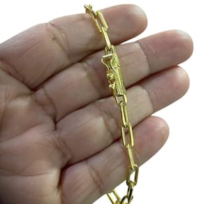 Pulseira Cadeado 5mm Alongado Fecho Canhão Banhado Ouro Detalhes do Produto: Material: ligas metálicas de alta qualidade, especialmente tratadas para fixação e absorção do ouro, com acabamento em verniz protetor. Aparência: visual idêntico ao ouro maciço. Produção: artesanal, com atenção meticulosa aos detalhes. Banho: 10 camadas espessas de ouro 18k, finalizadas com verniz antialérgico . Elos: soldados varia conforme o modelo . Pedras: zircônias brilhantes cravejadas quando aplicável . Tamanhos Disponíveis: Cordões Masculinos: 70cm padrão e 60cm sob consulta/Pedido Via Chat . Cordões Femininos: 50cm padrão e 45cm sob consulta/Pedido Via Chat . Pulseiras: 21cm padrão ; tamanhos de 18cm a 23cm sob consulta/Pedido Via Chat. Pingentes: conforme imagens; consulte para mais detalhes via chat. Espessuras Recomendadas para Cordões / Pingentes: P: 1mm a 4mm M: 4mm a 8mm G: 6mm a 13mm Gg: 12mm a 18mm Incluso na Compra: Saquinho de organza para armazenamento seguro. Caixa elegante, perfeita para presente. Cupom de desconto para a próxima compra. Flyer com outros produtos da coleção. Carta de agradecimento personalizada. Adesivo da marca ToJoia18k. Informações Adicionais: : 6 meses termos acompanham o produto . Devolução: 7 dias para devolução sem questionamentos. Envio: despacho em até 24 horas úteis após confirmação do pagamento. Cuidados com a Peça: Evite contato com produtos químicos; aguarde o perfume secar antes de usar. Evite contato com shampoo, condicionadores e suor excessivo. Armazene em local seco, preferencialmente no saquinho de organza fornecido. Uso no mar e piscina é permitido; lave com água corrente e sabão neutro após. Por que Escolher a ToJoia18k Semi-joias luxuosas que combinam estilo, qualidade e sofisticação. Banho espesso de ouro 18k, garantindo brilho duradouro e acabamento impecável. Design exclusivo e produção artesanal, perfeitos para qualquer ocasião. Materiais premium que asseguram durabilidade. Ao escolher uma semi-joia ToJoia18k, você investe em qualidade, elegância e uma experiência única. Aguardamos sua compra Observação: pode ocorrer variação no fecho raramente . Imagens reais, sem edição. Qualquer dúvida, estamos à disposição para esclarecimentos. Marca: Não Informado