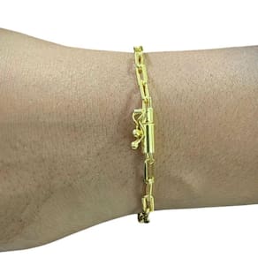 Pulseira Cadeado 5mm Alongado Fecho Canhão Banhado Ouro Detalhes do Produto: Material: ligas metálicas de alta qualidade, especialmente tratadas para fixação e absorção do ouro, com acabamento em verniz protetor. Aparência: visual idêntico ao ouro maciço. Produção: artesanal, com atenção meticulosa aos detalhes. Banho: 10 camadas espessas de ouro 18k, finalizadas com verniz antialérgico . Elos: soldados varia conforme o modelo . Pedras: zircônias brilhantes cravejadas quando aplicável . Tamanhos Disponíveis: Cordões Masculinos: 70cm padrão e 60cm sob consulta/Pedido Via Chat . Cordões Femininos: 50cm padrão e 45cm sob consulta/Pedido Via Chat . Pulseiras: 21cm padrão ; tamanhos de 18cm a 23cm sob consulta/Pedido Via Chat. Pingentes: conforme imagens; consulte para mais detalhes via chat. Espessuras Recomendadas para Cordões / Pingentes: P: 1mm a 4mm M: 4mm a 8mm G: 6mm a 13mm Gg: 12mm a 18mm Incluso na Compra: Saquinho de organza para armazenamento seguro. Caixa elegante, perfeita para presente. Cupom de desconto para a próxima compra. Flyer com outros produtos da coleção. Carta de agradecimento personalizada. Adesivo da marca ToJoia18k. Informações Adicionais: : 6 meses termos acompanham o produto . Devolução: 7 dias para devolução sem questionamentos. Envio: despacho em até 24 horas úteis após confirmação do pagamento. Cuidados com a Peça: Evite contato com produtos químicos; aguarde o perfume secar antes de usar. Evite contato com shampoo, condicionadores e suor excessivo. Armazene em local seco, preferencialmente no saquinho de organza fornecido. Uso no mar e piscina é permitido; lave com água corrente e sabão neutro após. Por que Escolher a ToJoia18k Semi-joias luxuosas que combinam estilo, qualidade e sofisticação. Banho espesso de ouro 18k, garantindo brilho duradouro e acabamento impecável. Design exclusivo e produção artesanal, perfeitos para qualquer ocasião. Materiais premium que asseguram durabilidade. Ao escolher uma semi-joia ToJoia18k, você investe em qualidade, elegância e uma experiência única. Aguardamos sua compra Observação: pode ocorrer variação no fecho raramente . Imagens reais, sem edição. Qualquer dúvida, estamos à disposição para esclarecimentos. Marca: Não Informado Ean: 7892027806863