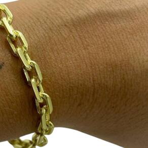 Pulseira Cadeado 6mm Fecho Canhão Banhado Ouro 18K Detalhes do Produto: Material: ligas metálicas de alta qualidade, especialmente tratadas para fixação e absorção do ouro, com acabamento em verniz protetor. Aparência: visual idêntico ao ouro maciço. Produção: artesanal, com atenção meticulosa aos detalhes. Banho: 10 camadas espessas de ouro 18k, finalizadas com verniz antialérgico . Elos: soldados varia conforme o modelo . Pedras: zircônias brilhantes cravejadas quando aplicável . Tamanhos Disponíveis: Cordões Masculinos: 70cm padrão e 60cm sob consulta/Pedido Via Chat . Cordões Femininos: 50cm padrão e 45cm sob consulta/Pedido Via Chat . Pulseiras: 21cm padrão ; tamanhos de 18cm a 23cm sob consulta/Pedido Via Chat. Pingentes: conforme imagens; consulte para mais detalhes via chat. Espessuras Recomendadas para Cordões / Pingentes: P: 1mm a 4mm M: 4mm a 8mm G: 6mm a 13mm Gg: 12mm a 18mm Incluso na Compra: Saquinho de organza para armazenamento seguro. Caixa elegante, perfeita para presente. Cupom de desconto para a próxima compra. Flyer com outros produtos da coleção. Carta de agradecimento personalizada. Adesivo da marca ToJoia18k. Informações Adicionais: : 6 meses termos acompanham o produto . Devolução: 7 dias para devolução sem questionamentos. Envio: despacho em até 24 horas úteis após confirmação do pagamento. Cuidados com a Peça: Evite contato com produtos químicos; aguarde o perfume secar antes de usar. Evite contato com shampoo, condicionadores e suor excessivo. Armazene em local seco, preferencialmente no saquinho de organza fornecido. Uso no mar e piscina é permitido; lave com água corrente e sabão neutro após. Por que Escolher a ToJoia18k Semi-joias luxuosas que combinam estilo, qualidade e sofisticação. Banho espesso de ouro 18k, garantindo brilho duradouro e acabamento impecável. Design exclusivo e produção artesanal, perfeitos para qualquer ocasião. Materiais premium que asseguram durabilidade. Ao escolher uma semi-joia ToJoia18k, você investe em qualidade, elegância e uma experiência única. Aguardamos sua compra Observação: pode ocorrer variação no fecho raramente . Imagens reais, sem edição. Qualquer dúvida, estamos à disposição para esclarecimentos. Marca: Não Informado