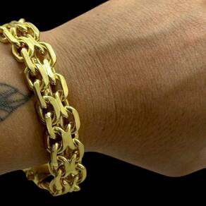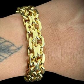 Pulseira Cadeado Duplo 15mm Banhado a Ouro 18K Detalhes do Produto: Material: ligas metálicas de alta qualidade, especialmente tratadas para fixação e absorção do ouro, com acabamento em verniz protetor. Aparência: visual idêntico ao ouro maciço. Produção: artesanal, com atenção meticulosa aos detalhes. Banho: 10 camadas espessas de ouro 18k, finalizadas com verniz antialérgico . Elos: soldados varia conforme o modelo . Pedras: zircônias brilhantes cravejadas quando aplicável . Tamanhos Disponíveis: Cordões Masculinos: 70cm padrão e 60cm sob consulta/Pedido Via Chat . Cordões Femininos: 50cm padrão e 45cm sob consulta/Pedido Via Chat . Pulseiras: 21cm padrão ; tamanhos de 18cm a 23cm sob consulta/Pedido Via Chat. Pingentes: conforme imagens; consulte para mais detalhes via chat. Espessuras Recomendadas para Cordões / Pingentes: P: 1mm a 4mm M: 4mm a 8mm G: 6mm a 13mm Gg: 12mm a 18mm Incluso na Compra: Saquinho de organza para armazenamento seguro. Caixa elegante, perfeita para presente. Cupom de desconto para a próxima compra. Flyer com outros produtos da coleção. Carta de agradecimento personalizada. Adesivo da marca ToJoia18k. Informações Adicionais: : 6 meses termos acompanham o produto . Devolução: 7 dias para devolução sem questionamentos. Envio: despacho em até 24 horas úteis após confirmação do pagamento. Cuidados com a Peça: Evite contato com produtos químicos; aguarde o perfume secar antes de usar. Evite contato com shampoo, condicionadores e suor excessivo. Armazene em local seco, preferencialmente no saquinho de organza fornecido. Uso no mar e piscina é permitido; lave com água corrente e sabão neutro após. Por que Escolher a ToJoia18k Semi-joias luxuosas que combinam estilo, qualidade e sofisticação. Banho espesso de ouro 18k, garantindo brilho duradouro e acabamento impecável. Design exclusivo e produção artesanal, perfeitos para qualquer ocasião. Materiais premium que asseguram durabilidade. Ao escolher uma semi-joia ToJoia18k, você investe em qualidade, elegância e uma experiência única. Aguardamos sua compra Observação: pode ocorrer variação no fecho raramente . Imagens reais, sem edição. Qualquer dúvida, estamos à disposição para esclarecimentos. Marca: Não Informado Ean: 7891752237607