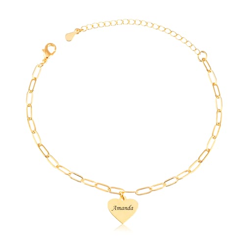 Pulseira Cartier Personalizada Com Pingente De Coração Com Nome Em Banho De Ouro 18K. ESPECIFICAÇÕES: Pulseira: 17 cm + 5,5 cm de extensor Pingente: 1,7 cm x 1,7 cm Peso: 2,5 gramas Material: Banho de ouro 18k DETALHES: Este lindo modelo de Pulseira com corrente cartier longa, é confeccionada com um lindo pingente de coração com nome, onde a gravação do nome é totalmente personalizável... Essa pulseira é um produto personalizado e será fabricada a partir do seu pedido, especialmente para você! A pulseira vai embalada em uma linda caixinha de presente exclusiva Joyce Fenolio Joias! GARANTIA: Nossas peças passam por um criterioso processo de qualidade, desenvolvida com banho de até 10 camadas de Ouro 18K. Produzidas com tecnologia hipoalergênica, livre de metais pesados (não contém níquel). E com garantia de 6 meses quanto ao banho. Encante-se com a qualidade e o prazo da Joyce Fenolio Joias! Fabricação Full até 2 dias úteis! NÃO FAZEMOS TROCA DE PRODUTOS PERSONALIZADO. Marca: Joyce Fenolio