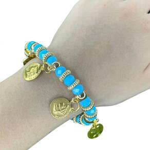 Pulseira Cigana Umbanda e Candomblé Cor: Azul Clara Moedas Pulseira Cigana Pomba Gira Moedas Umbanda e Candomblé