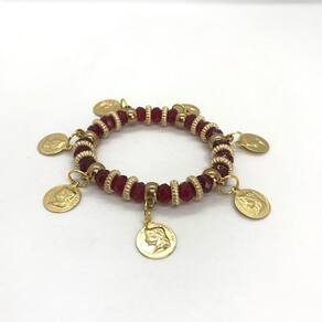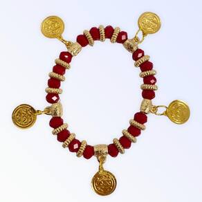 Pulseira cigana vermelha cristal e silicone com moedas Esta linda pulseira de fabricação da lua mística é confeccionada artesanalmente com cristais, pedras e elástico de silicone, o que lhe confere durabilidade, resistência, conforto e beleza.É adequada para usar em qualquer ocasião, com design elegante.Excelente para presentear, cheio de amor, carregando promessa e confiança, expressando bênçãos, proteção, sorte e apreciação.É um excelente presente para aniversários, graduações ou apenas ofertar a sorte àqueles que ama.Mude hoje mesmo o seu destinoCaracterísticas técnicas: Pulseira unisex Pedras e cristais: 8 mm Gênero: masculino/feminino Peso: 30 gramascuidados com seu acessório: Evite atrito entre as peças para não comprometer o visual. Cremes corporais, perfumes e óleos podem danificar seus acessórios. Utilize flanela macia e seca para limpeza de sua pulseira. Com esses cuidados sua peça terá uma maior vida útil.Gratidão e sucesso Marca: Não Informado Ean: 7890003909416