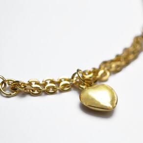 A pulseira Coração em Ouro 18K é o tipo mais indicado em visuais para festas ou combinações elegantes, pois é um modelo fino de 2 mm de espessura e delicado de 19,5 cm de comprimento. para essas ocasiões ele vem com berloque coração de 9 mm altura x 7 mm largura em Ouro 18K que trazem um charme, deixando o seu look mais jovial e requintado. É um acessório muito versátil. ele pode ser tanto no dia a dia como em algum evento especial, a Pulseira dá um up no seu look , se você nunca usou um, faça o teste Oferecemos, portanto, uma grande variedade que atendem aos mais diversos estilos e personalidades. Todas as joias comercializadas possuem a certificação dos fabricantes que são associados da AMAGOLD, essa associação faz auditoria periódica nas indústrias para certificação da procedência, transporte adequado e finalização do processo que é a transformação da matéria-prima em produto final, devidamente aprovado. Um Instante Pode Ser Eterno, Eternize Momentos Ivan Joias Marca: Não Informado