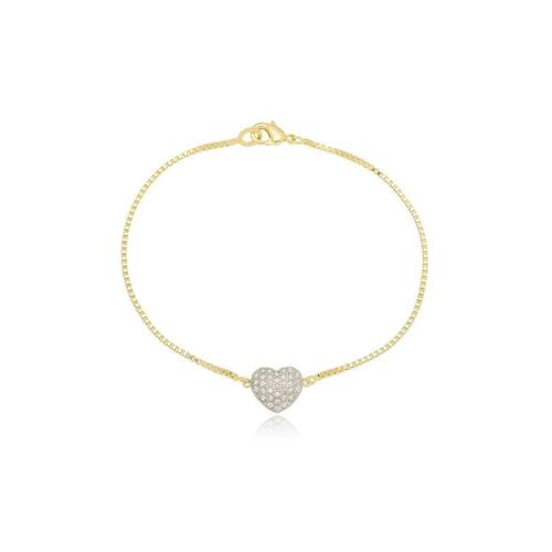 Pulseira Coração Banhada a Ouro 18k 6922 Pulseira: medindo 18cm de comprimento com pingente coração cravejado em zircõnia cristal medindo 1cm