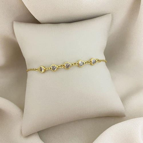 Pulseira Corações Ponto de Luz Banhada a Ouro