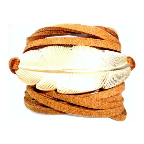 Pulseira Feminina em Camurça com Pingente Pena Dourada ideal para um look descontraído e chic ao mesmo tempo. Arrase