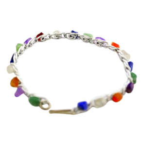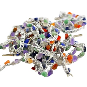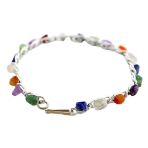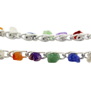 Pulseira Corrente com Pedra Mista Rolada Colada Em cima ótimo Brilho, pedra genuina, mineral autentico Pulseira com arco em forma de Elo de Corrente com Pedra Colada no Topo Metal com Banho Prateado