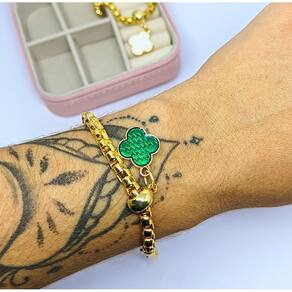 cada pessoa as cores das pedras dos produtos podem ter uma leve variação com a foto do site. ____________________________________________________________________ DICAS DE CONSERVAÇÃO: Contra Indicações: - Não usar creme, perfumes, ou outros cosméticos por cima das peças. - Evitar banho de mar (Devido a oxidação do Sal) - Evitar banho de piscina (Devido a oxidação do Cloro) - Evitar Pulseira TRevo com produtos químicos em geral Evite usar a peça durante a prática de exercícios físicos já que é o momento de maior transpiração Após a utilização de cosméticos, como perfumes e hidratantes, aguardar alguns minutos antes de colocar a peça.