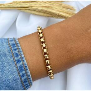 DADOS TÉCNICOS: - Folheado: Ouro e Ródio branco com acabamento em Verniz Cataforético o que faz com que aumente a resistência e o brilho. - Tamano da Pulseira: 19cm + cm extensor - Garantia 7 dias contra defeito - É hipoalérgica.