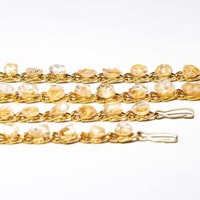 Pulseira Corrente com pedrinha de Cristal rolada colada em cima ótimo brilho, pedra genuina de garimpo mineral autêntico. Pulseira com arco em forma de elo de corrente com pedra colada no topo metal com banho dourado.