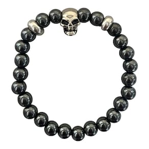 Pulseira Crânio Skull Pedra Hematita 8mm Proteção