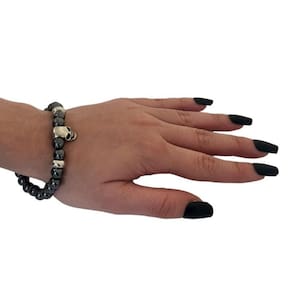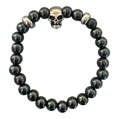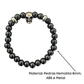 Pulseira Crânio Skull Pedra Hematita 8mm Proteção Esta pulseira, carrega promessa e confiança, expressando bênçãos, proteção, sorte, amor e apreciação, um mimo.Excelente para presentear, aniversários, graduações ou apenas ofertar a sorte àqueles que ama.É adequada para usar em qualquer ocasião, com design elegante.Confeccionada artesanalmente pedras hematita e elástico de silicone, o que lhe confere durabilidade, resistência, conforto e beleza, podendo ser benzida. Evite atrito entre as peças para não comprometer o visual. Cremes corporais, perfumes e óleos podem danificar seus acessórios.Utilize flanela macia e seca para limpeza de sua pulseira. Com esses cuidados sua peça terá uma maior vida útil. Imagens meramente ilustrativas.Por serem produtos produzidos artesanalmente, poderão sofrer pequenas alterações nos acessórios em cada lote, dependendo da disponibilidade dos mesmos. Gratidão e SucessoTire todas as suas Dúvidas antes de concluir a compra. Iremos responder o mais breve possível.Embalagem de Envio: Caixa de papelão ondulado, plástico bolha, conforme necessidade do produto.Consulte nossos preços e condições para vendas. Respostas das dúvidas mais frequentes na ordem:R1: Já realizamos milhares de entregas em todo o Brasil, somos especialistas no que fazemos.R2: Assim que seu pedido for despachado, esta plataforma envia para você o código de rastreamento.R3: Enviamos o produto 100% inspecionado e conferido em nosso checkout e são embalados em embalagem de papelão e plástico bolha.R5: Iremos despachar o seu produto o mais rápido possível, assim que for confirmado pela plataforma, enviamos em até 24h.R6: Nós queremos a sua satisfação, qualquer problema iremos te auxiliar em nossos canais de comunicações.