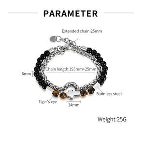 Tamanho: 195+25 mm Peso: 25 g Material: aço inoxidável/Olho de tigre Peça central cruzada icônica — apresenta um símbolo de cruz de aço inoxidável polido para uma expressão ousada de fé e força. Design de camada dupla — combina elos de corrente e fios de miçangas naturais para uma aparência de streetwear dinâmica e em camadas. Olho de tigre e contas pretas — Pedras naturais de olho de tigre misturadas com contas pretas brilhantes proporcionam um forte impacto visual e energia espiritual. Ajuste durável e ajustável — Feito de aço inoxidável com 195 mm de comprimento e extensor de 25 mm, adequado para a maioria dos tamanhos de pulso. Joias masculinas modernas — perfeitas para roupas de hip hop, motociclista ou em camadas, adicionando atitude e personalidade ao uso diário.