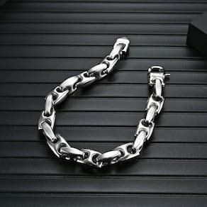 Tamanho: Largura 10 cm Peso: 58 g Material: aço inoxidável Chunky Retro Chain Styling — Inspirada na estética vintage de Hong Kong, esta pulseira apresenta um design espesso de elos entrelaçados que adiciona ousadia a qualquer look de streetwear. Aço inoxidável de alto polimento — Feito de aço inoxidável de primeira qualidade com superfície polida, oferecendo forte resistência à corrosão e um brilho metálico duradouro. Modelagem de streetwear unissex — Projetada para homens e mulheres, esta pulseira complementa o hip hop, o vestuário tecnológico e a moda inspirada no Y2K com uma presença ousada. Fecho seguro de lagosta — Construído com um fecho resistente para fixação fácil e confiável e uso duradouro durante as atividades diárias. Sensação sólida, presença forte — Com 10 mm de largura e 58 g, esta pulseira oferece uma sensação de confiança e peso que combina expressões urbanas ousadas e roupas modernas.