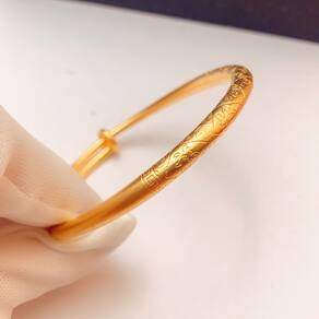 Material: Motivo de bênçãos simbólicas em placa dourada — apresenta gravuras tradicionais representando “Cinco bênçãos” e longevidade, oferecendo significado cultural e bons votos. Base de cobre sólido com placer dourado — Feita de liga de cobre durável e revestida com placer dourado radiante para um acabamento luxuoso que resiste ao desbotamento. Fecho ajustável — O design exclusivo push-pull permite um ajuste flexível para uso confortável em vários tamanhos de pulso. Artesanato refinado — Gravações detalhadas e superfícies polidas refletem artesanato de alta qualidade e uma mistura de tradição com sofisticação moderna. Ideal para uso cerimonial ou diário — Uma peça versátil adequada para eventos culturais, casamentos ou uso diário, oferecendo elegância e significado simbólico.