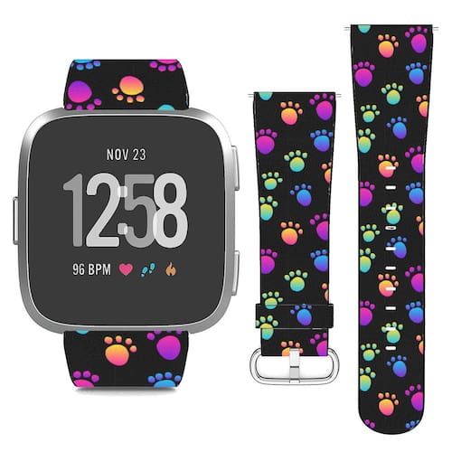 Pulseira de couro de reposição com estampa nobrand (Neon Dog and Cat Paws) compatível com Fitbit Versa 2/Versa/Versa Lite/Versa SE