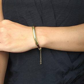 Esta pulseira foi desenvolvida em Couro Natural cor marrom café, com um lindo acessório canutilho que acompanha o contorno do punho. Com design sofisticado, todos os metais são revestidos em ouro. O couro circular garante conforto, tornando uma peça atemporal e única, de alta durabilidade.